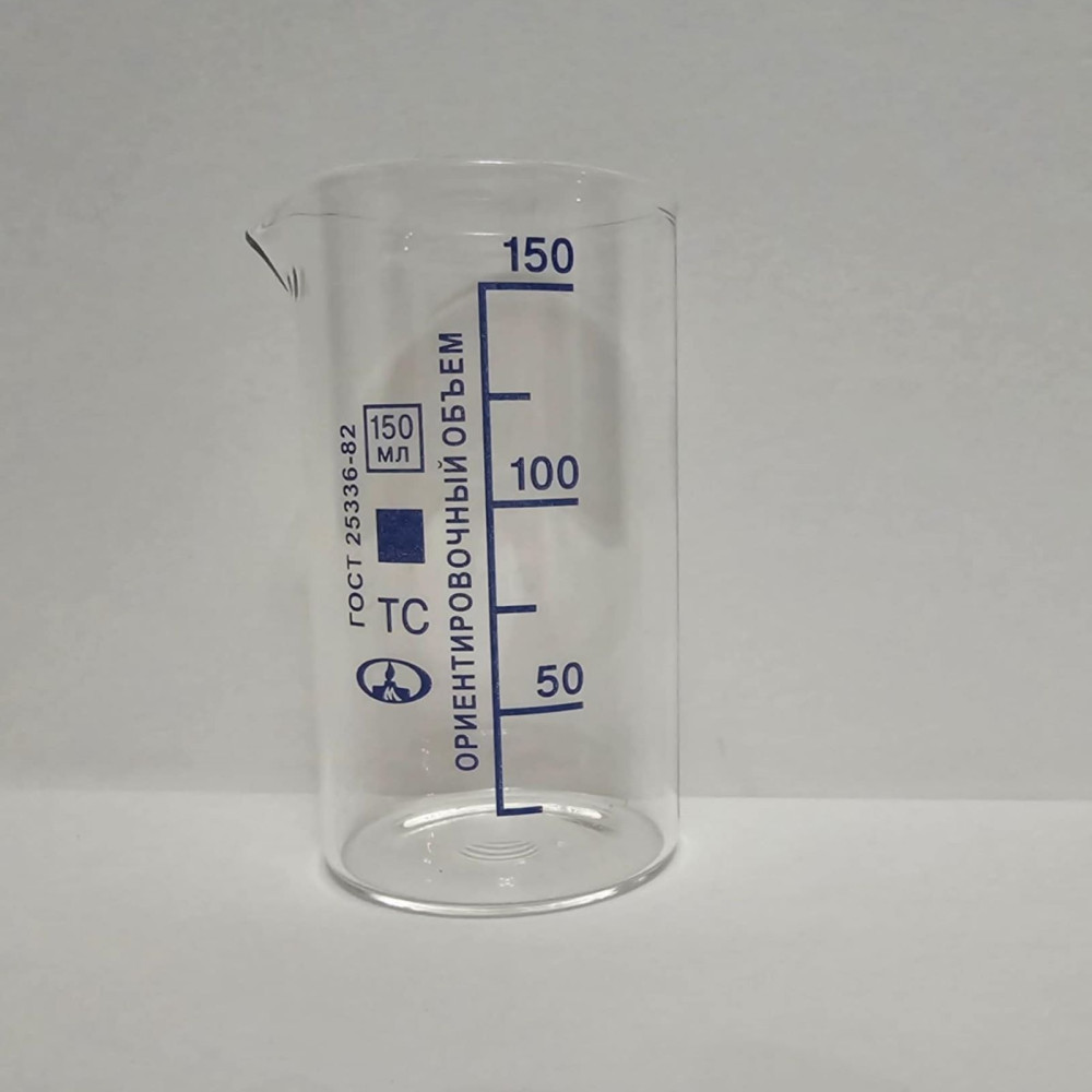 ქიმიური ცეცხლგამძლე, დანაყოფებიანი ჭიქა,მასალა მინა,მოცულობა 150 მლ