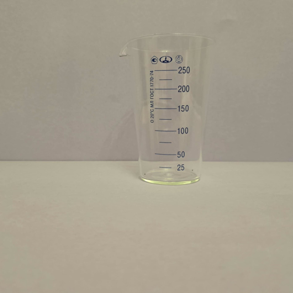 მოცულობა 250 მლ, გამოიყენება სითხის ზუსტი მოცულობის გასაზომად.