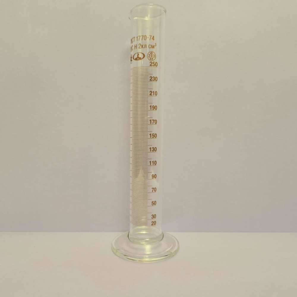 ცილინდრი დანაყოფებით, მასალა მინა ,მოცულობა 250მლ ,გამოიყენება ლაბორატორიებში