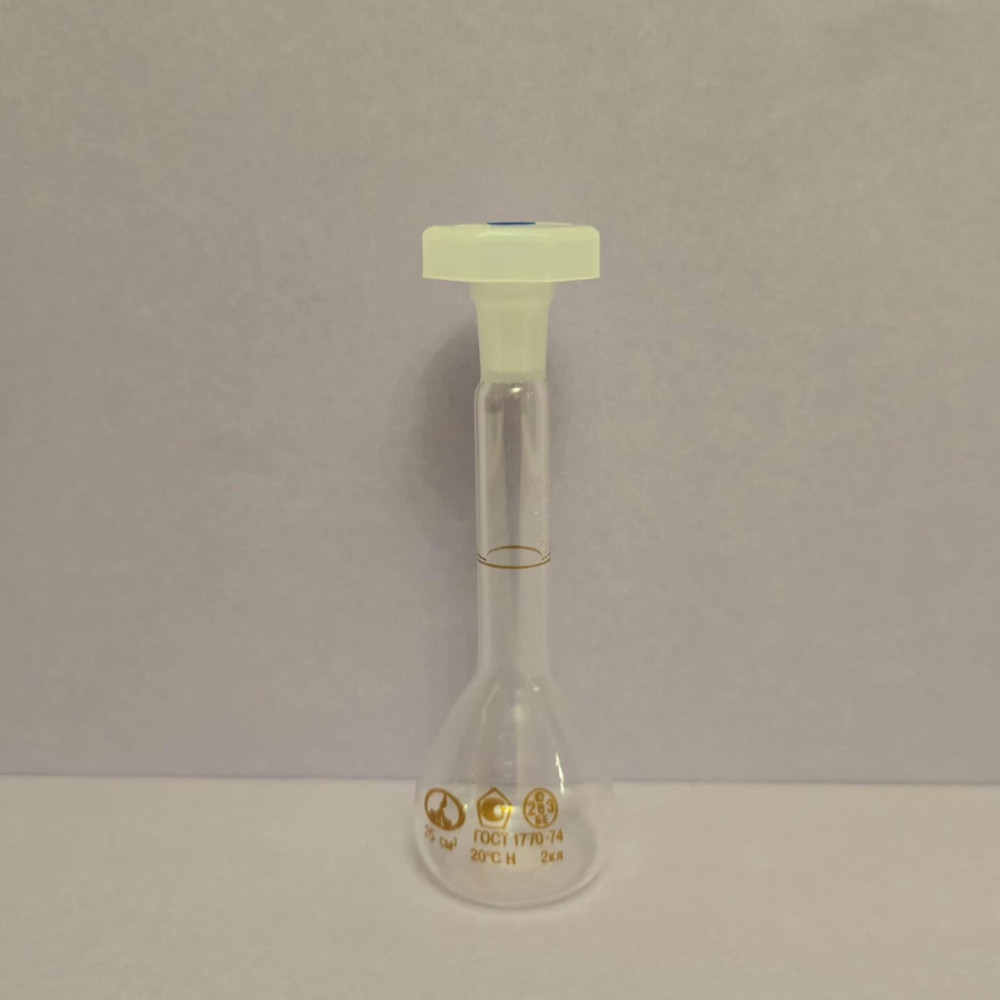 საზომი კოლბა პლასტმასის თავსახურით 25 მლ