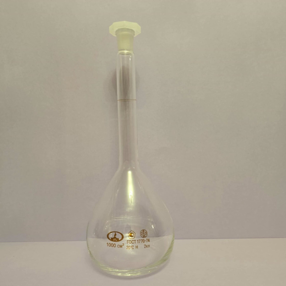 საზომი კოლბა,მოცულობა 1000მლ,მასალა არაცეხცხლგამძლე მინა.