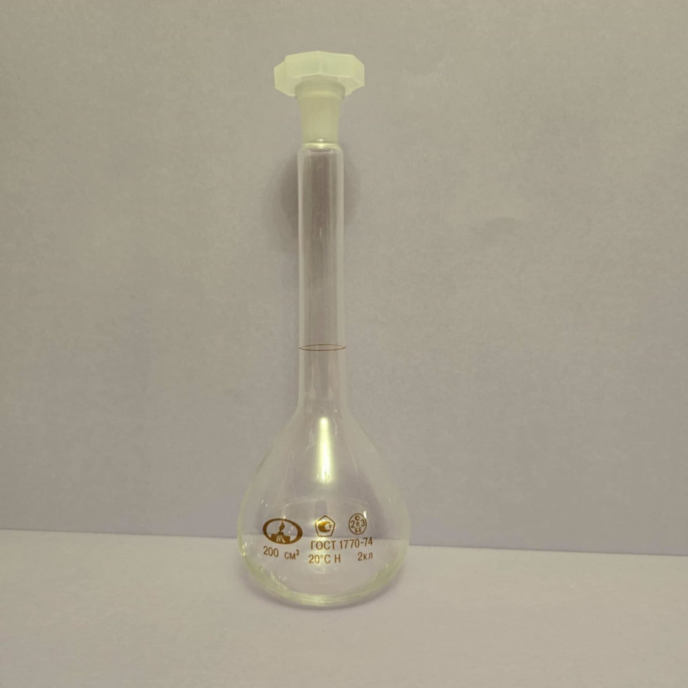 საზომი კოლბა,მოცულობა 200 მლ,მასალა არაცეცხლგამძლე მინა,