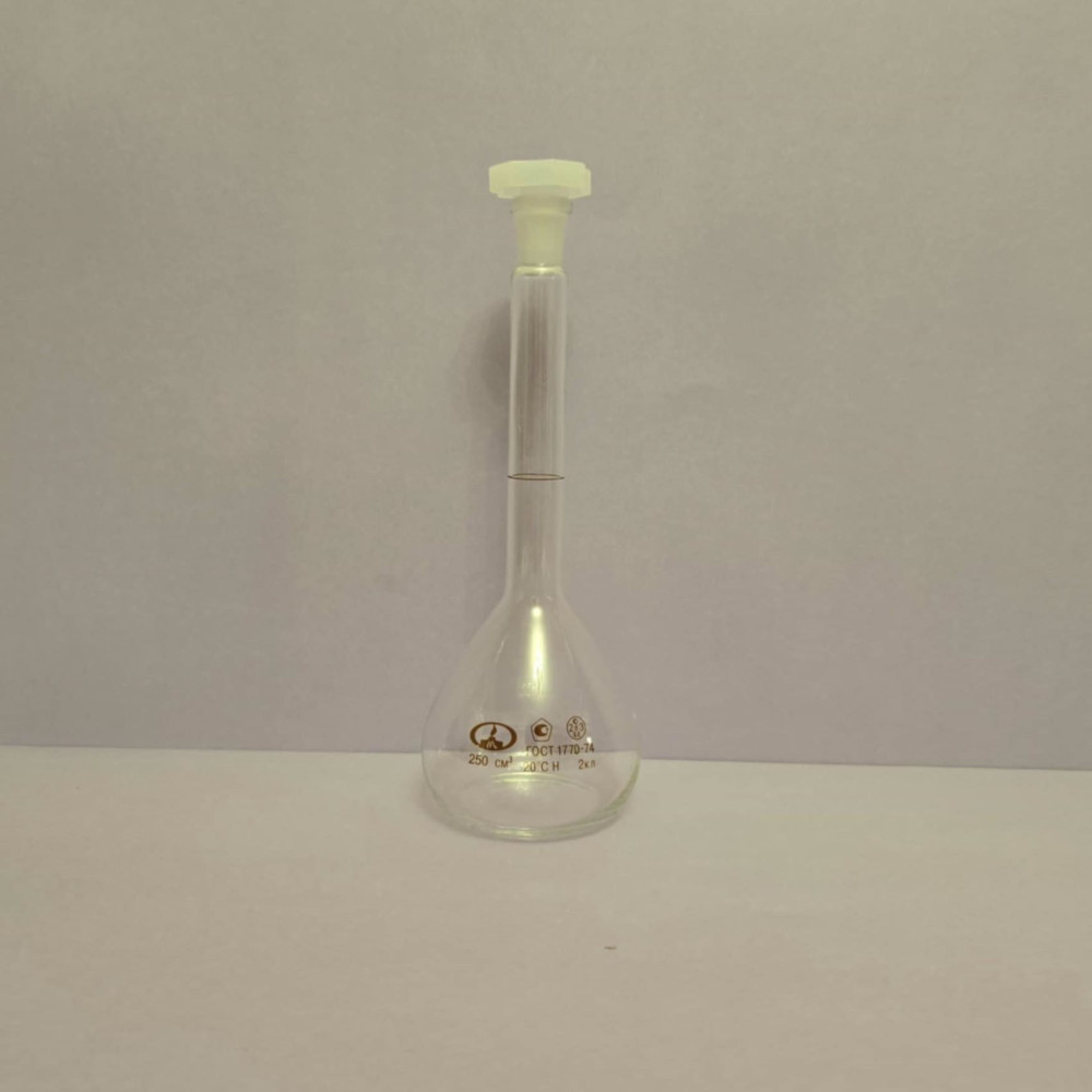 საზომი კოლბა,მოცულობა 250 მლ,მასალა არაცეცხლგამძლე მინა,